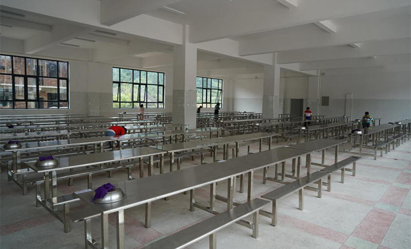 湖南省安化縣奎溪鎮(zhèn)完小現(xiàn)有13個教學班,學生592人,33名教職員工。以前由于學校食堂太小、餐桌破爛不堪,而且沒有凳子,學生們只能分批次就餐,二十幾個孩子圍在四張拼在一起的餐桌旁站著吃飯。為了解決孩子們的就餐環(huán)境,學校通過各種努力貸款新修建了學校食堂,新學期已投入使用,但舊的餐桌已無法繼續(xù)使用。為保障孩子們能有一個干凈整潔、溫馨如家的食堂,長房集團“藍絲帶”愛心傳遞基金向奎溪鎮(zhèn)完小捐贈了70套不銹鋼餐桌椅,徹底解決了孩子們“站著吃飯”的問題。